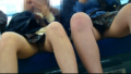 何と言っても冬でも対面から拝める「真っ白い綺麗な生脚」です。膝上にカバンを置いてわかりにくですが、かなり短いショーパンなので、太ももの露出感が半端ないです。