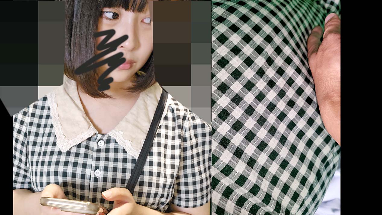 5:19-7:14 そしてボタンを外して服のなかに手を入れてしまいます。車内の様子を伺いながらチャンスがきたので胸を露わにしてやりました。胸を弄り終着駅に近づいたので終了です。